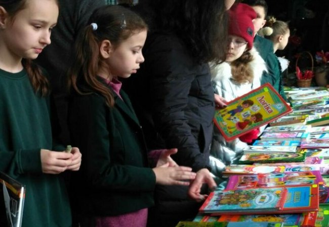 Благодійний ярмарок об’єднав школярів, їхніх батьків і педагогів. Учні зібрали книги і підготували сердечка ручної роботи, щоб продати їх.
