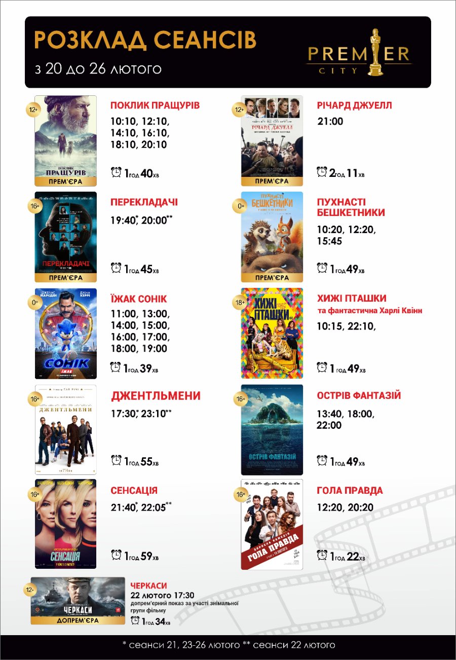 Від сьогодні, 20 лютого, в кінотеатрі PremierCity оновився розклад сеансів.