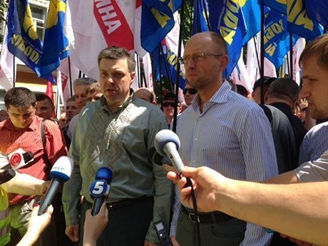 Очолювали колону опозиціонерів лідер парламентської фракції ВО "Батьківщина" Арсеній Яценюк та лідер ВО "Свобода" Олег Тягнибок, - пише Українська правда.