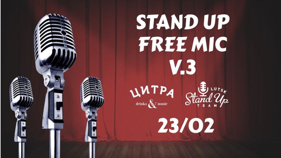 Що обіцяють: Вільний мікрофон повертається в Цитру. 23 лютого понад 10 коміків будуть змагатись за головний приз вечірки 2000 грн. Суддями будуть глядачі. Вони визначать найсмішнішого та найдотепнішого жартівника вечора, який і забере грошовий приз.