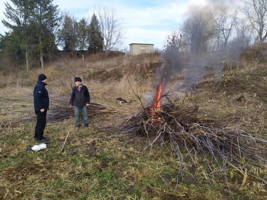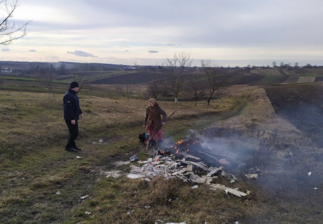 На території села Цегів у Мар’янівській ОТГ знайшли громадян, які випалювали рослинність та сміття на присадибних ділянках. Людей змусили загасити вогонь і роз’яснили, що продукти горіння сухої рослинності створюють загрозу для здоров’я та загрозу для пожежної безпеки екосистем.