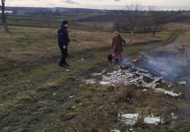 На території села Цегів у Мар’янівській ОТГ знайшли громадян, які випалювали рослинність та сміття на присадибних ділянках. Людей змусили загасити вогонь і роз’яснили, що продукти горіння сухої рослинності створюють загрозу для здоров’я та загрозу для пожежної безпеки екосистем.