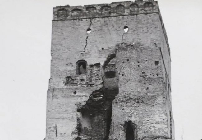 "Отак виглядала В'їзна вежа у далекому 1963 році до початку реставраційних робіт. Можна оцінити об'єми будівельно-реставраційних робіт докладених до створення сучасного вигляду замку", - йдеться у дописі.