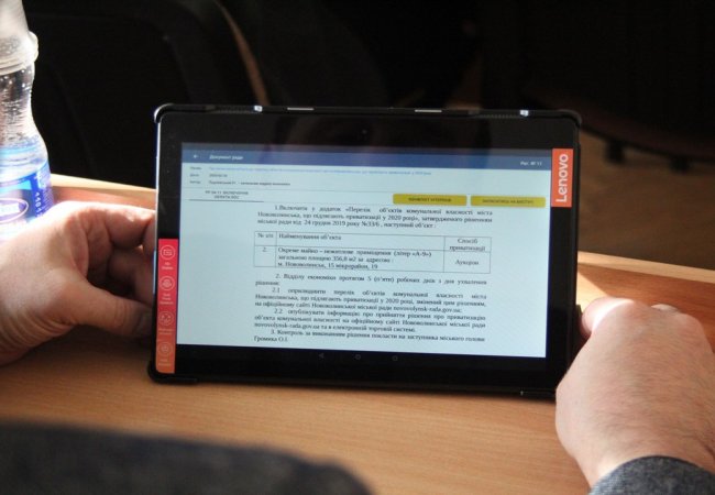 Депутати будуть голосувати та користуватися планшетами, замість друкованих проєктів рішень. Всі документи обранці громади можуть бачити в онлайн режимі на екрані гаджету.