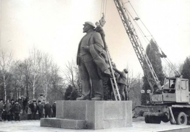 У районній газеті «Наше життя» за 29 лютого 1992 року читаємо: «У середу (26 лютого – авт.), під час пікетування біля міської ради було заявлено про те, щоб міськвиконком прийняв рішення про демонтаж пам'ятника Леніну (на вимогу пікетувальників). Виконання його виявилося настільки швидким, що на сам процес його проведення не встигли зібратися жителі міста. Пам'ятник зняли підйомним краном. він не зразу піддався його силі, бо штирі, на яких стояв, були високими. І все ж таки, кран зняв скульптуру з постаменту».