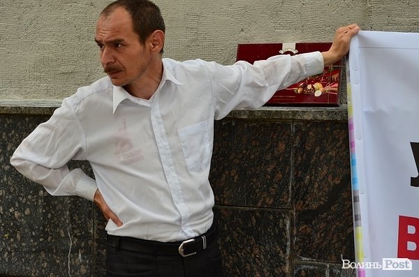 Як стало відомо, учасника акції протесту звати Віктор Сєлєдцов. Останнім часом його бачили у товаристві луцьких комуністів.