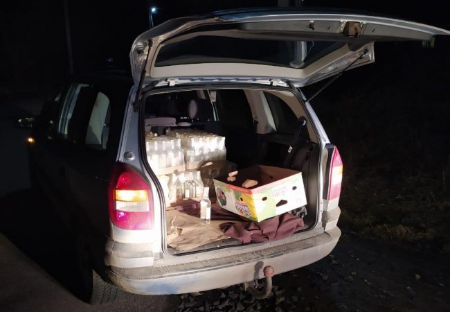 Під час зупинки транспортного засобу у селі Маслянка та за результатами поверхневої перевірки поліцейські виявили в автомобілі Opel Zafira під керуванням 45-річного жителя Луцька 10 ящиків горілки сумнівного походження із акцизними марками з ознаками підробки, повідомляє відділ комунікації поліції Рівненської області.