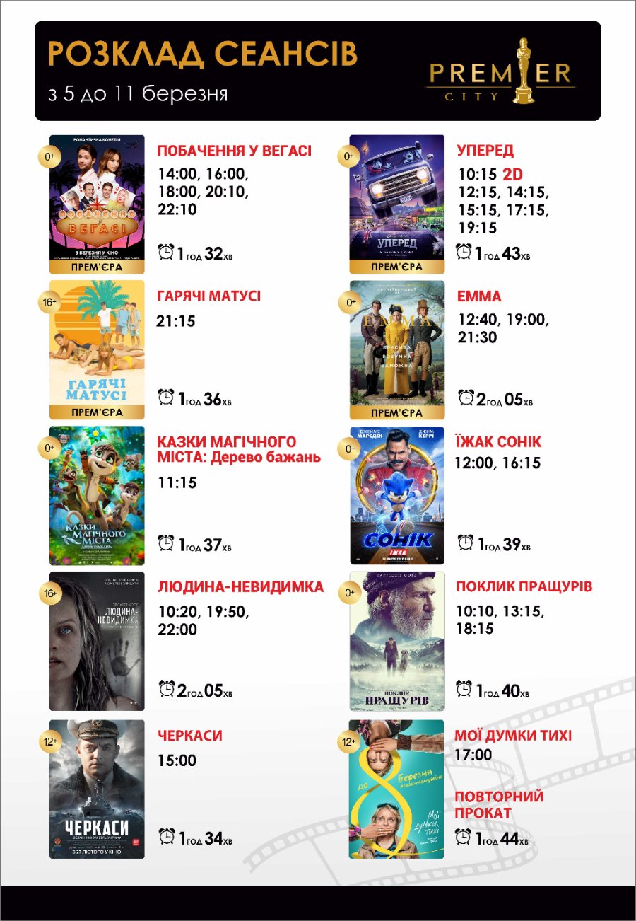 З 5 березня у кінотеатрі «PremierCity» оновився розклад сеансів.