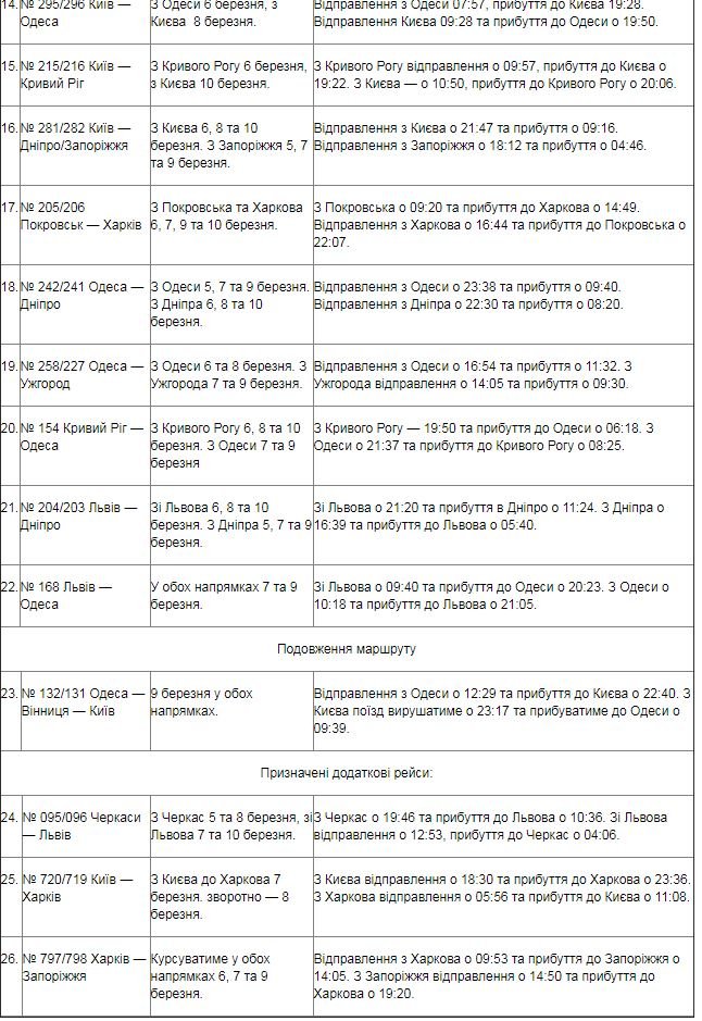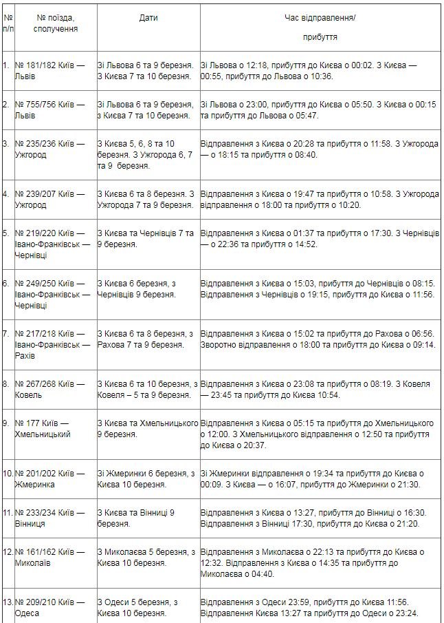 "Станом на 5 березня 2020 року призначено 22 додаткові поїзди до 8 Березня. Також три поїзди здійснять додаткові рейси, а один курсуватиме за подовженим маршрутом", - йдеться у повідомлені.