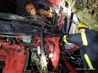 Пасажир покинув автомобіль самостійно, водія автомобіля затиснуло всередині деформованими конструкціями кабіни.