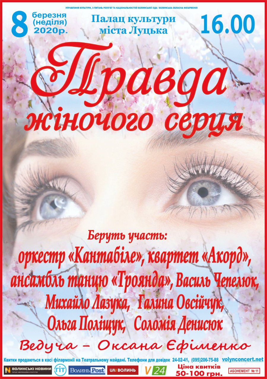 Волинська обласна філармонія підготувала музичний подарунок до свята весни і любові – концерт «Правда жіночого серця».