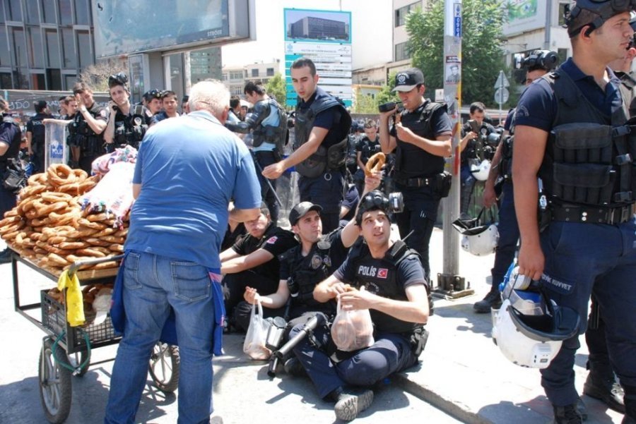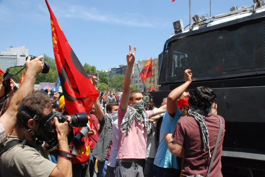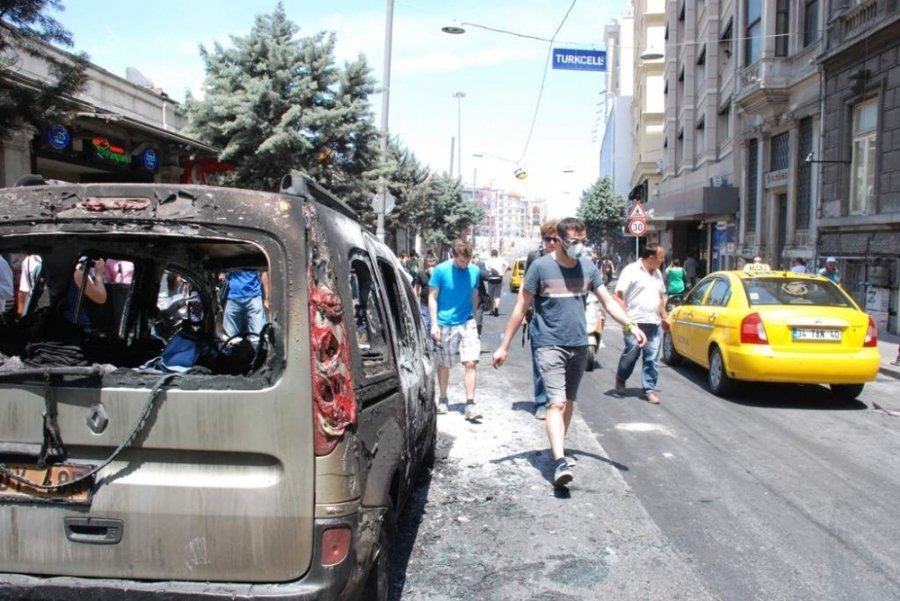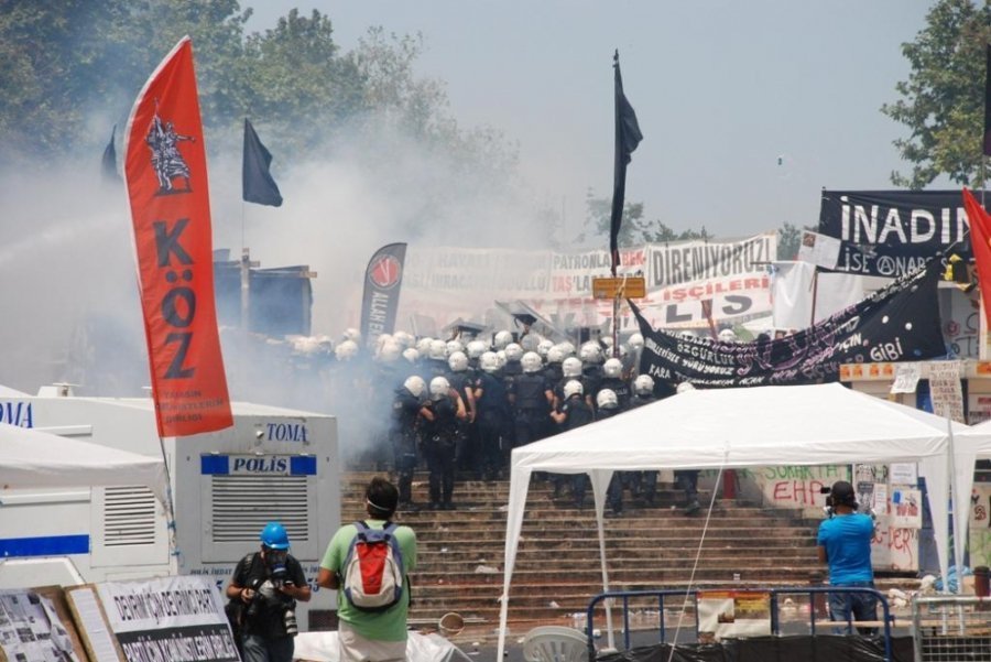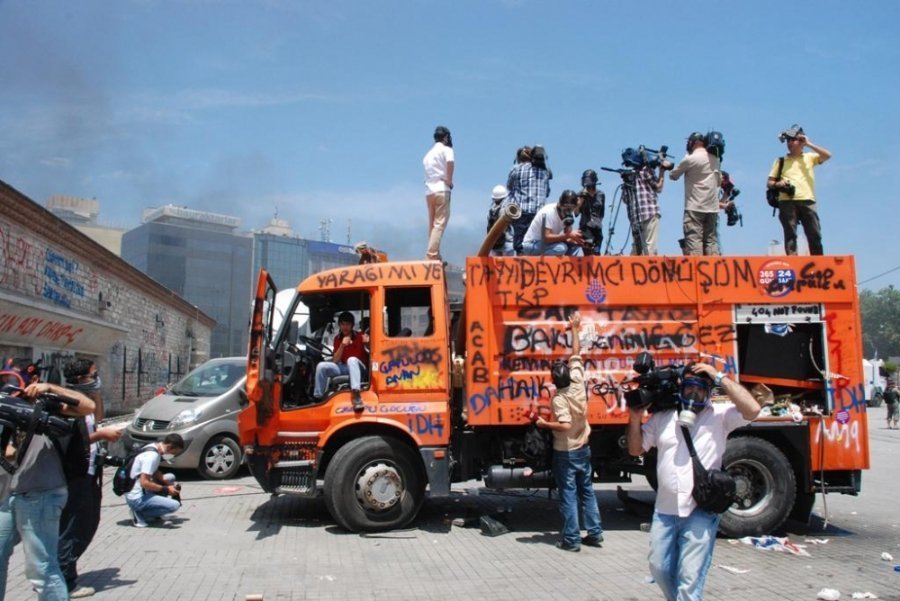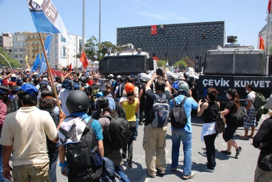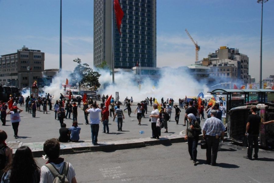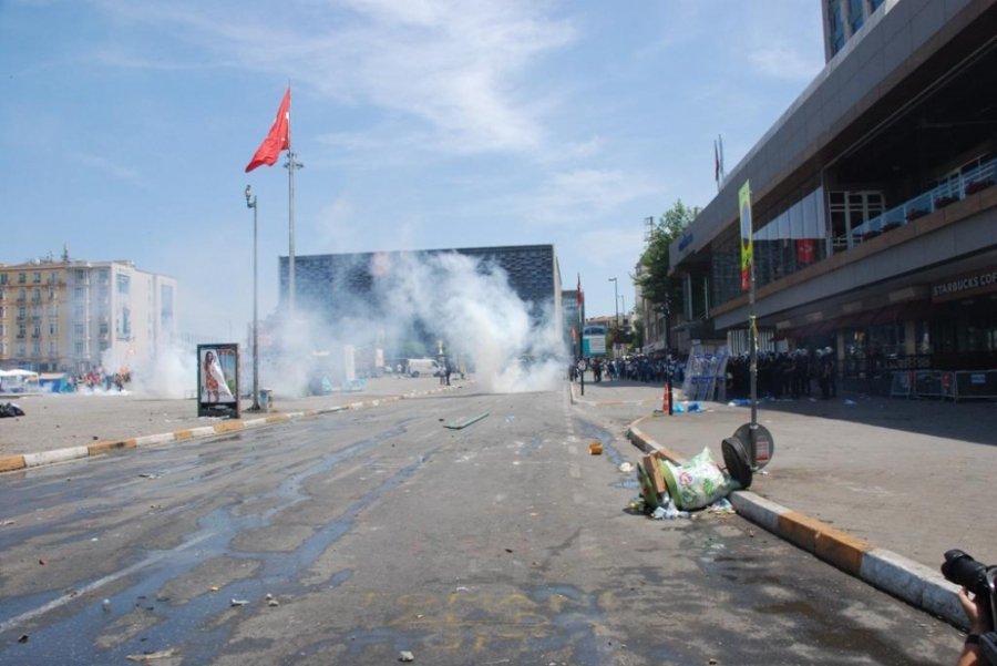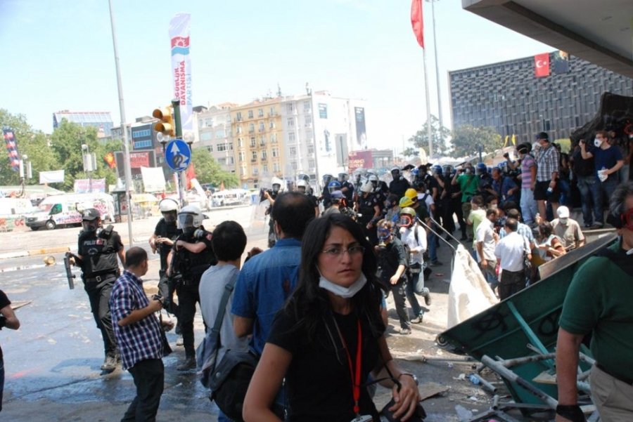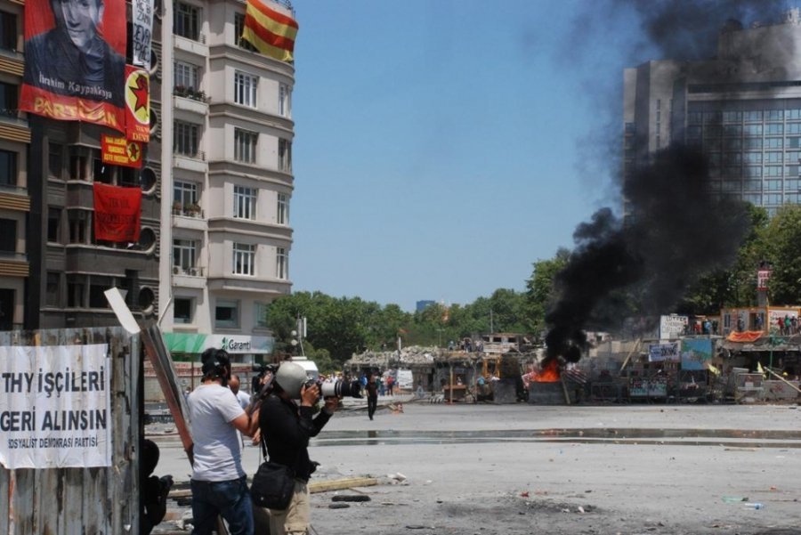 Журналісти, які не мають протигазів, переважно ховаються в холах готелів та ресторанчиках навколо площі Таксім. О 14:00 влада поширила повідомлення, що демонстрантів відтіснили з площі. Вони не відповідали дійсності.