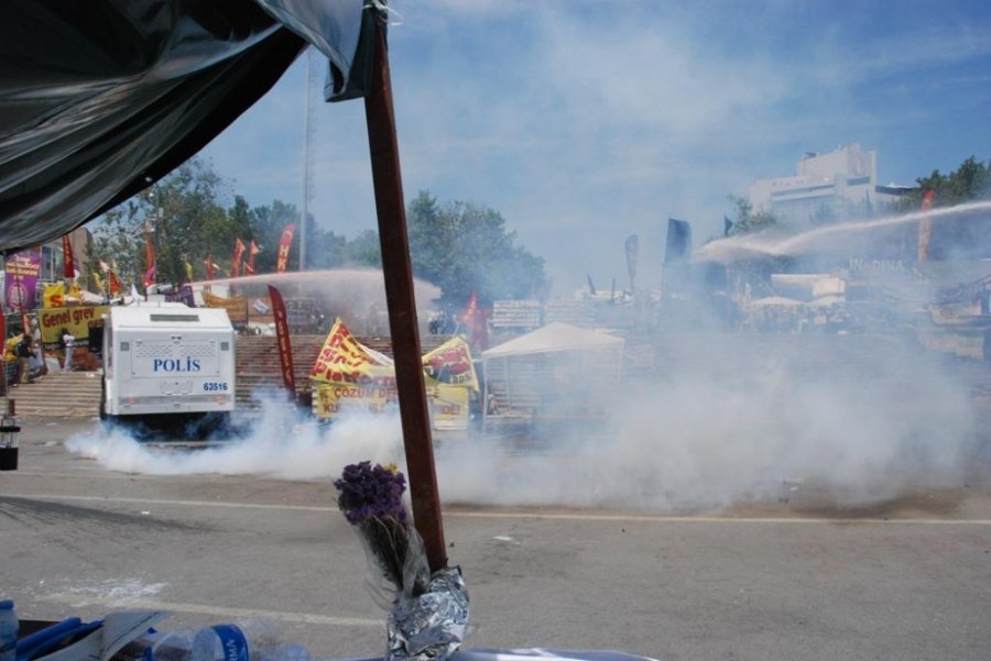 Приблизно о 12:00 поліція Стамбула почала закидувати колону демонстрантів на площі Таксім сльозогінним газом. Під "роздачу" потрапили в тому числі й журналісти, але багато з них мали протигази і шоломи, - пише Газета.ua.