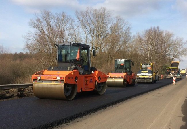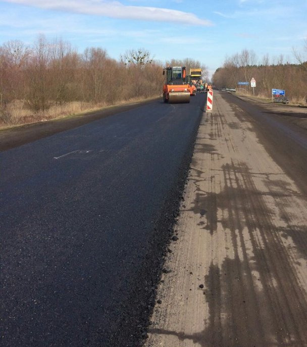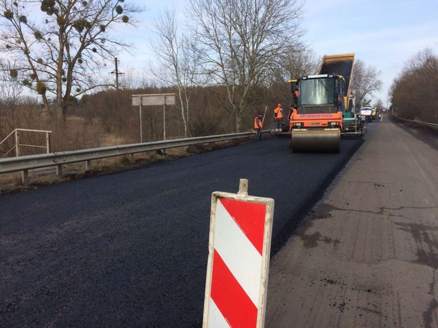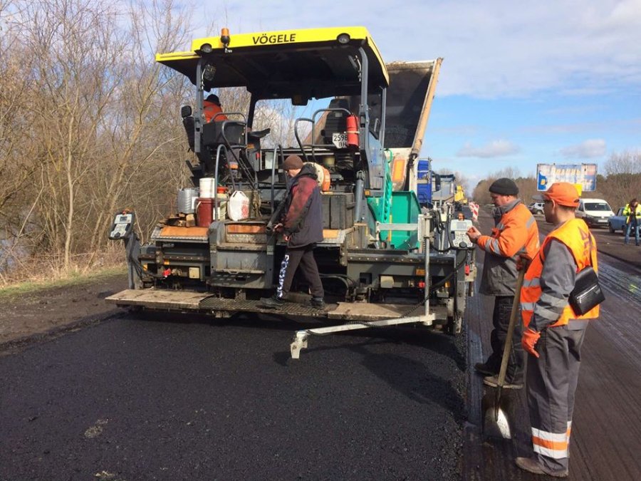 7 березня підрядне підприємство ТзОВ "Автомагістраль-Південь" приступило до влаштування вирівнюючого шару дорожнього одягу на відфрезерованій ділянці автошляху.