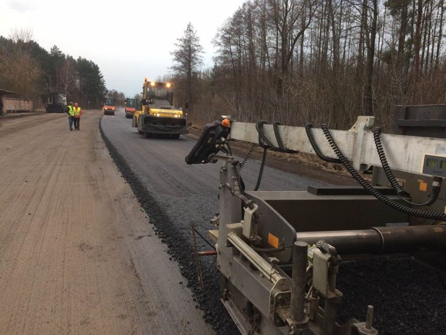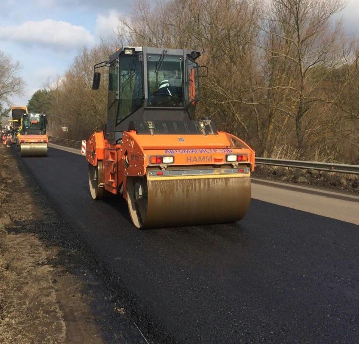 "При влаштуванні десятисантиметрового вирівнюючого шару дорожнього одягу на цьому об'єкті використовується крупнозерниста асфальтобетонна суміш. Згодом поверх буде укладено верхній шар, товщиною 5 см, зі щебенево-мастикового матеріалу", - йдеться у дописі.