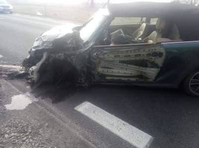 "Жінка, яка керувала легковим автомобілем Mini Cooper, намагалася обігнати дві вантажівки, внаслідок чого вона зіткнулася з бусом-автовозом, що прямував у зустрічному напрямку", – інформує черговий поліції повіту.