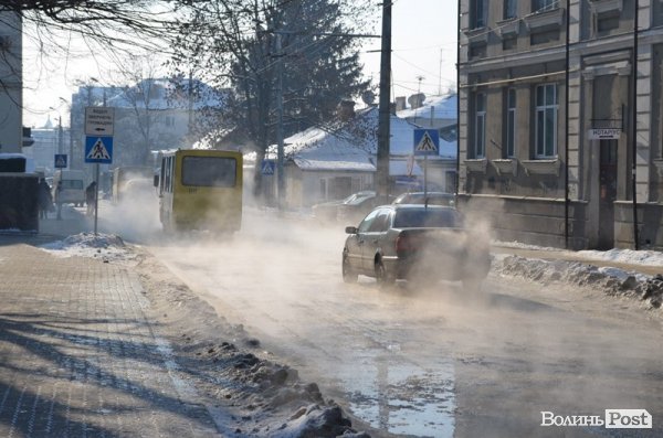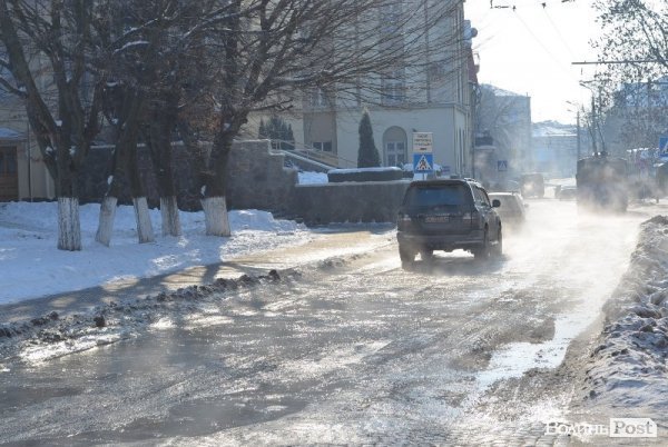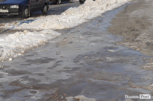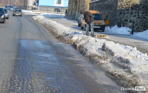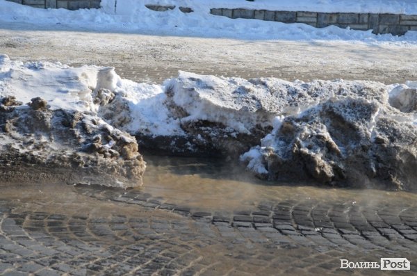 У Луцьку 3 лютого на вулиці Богдана Хмельницького прорвало водопровід - від місця прориву вулицею тече великий потік води.