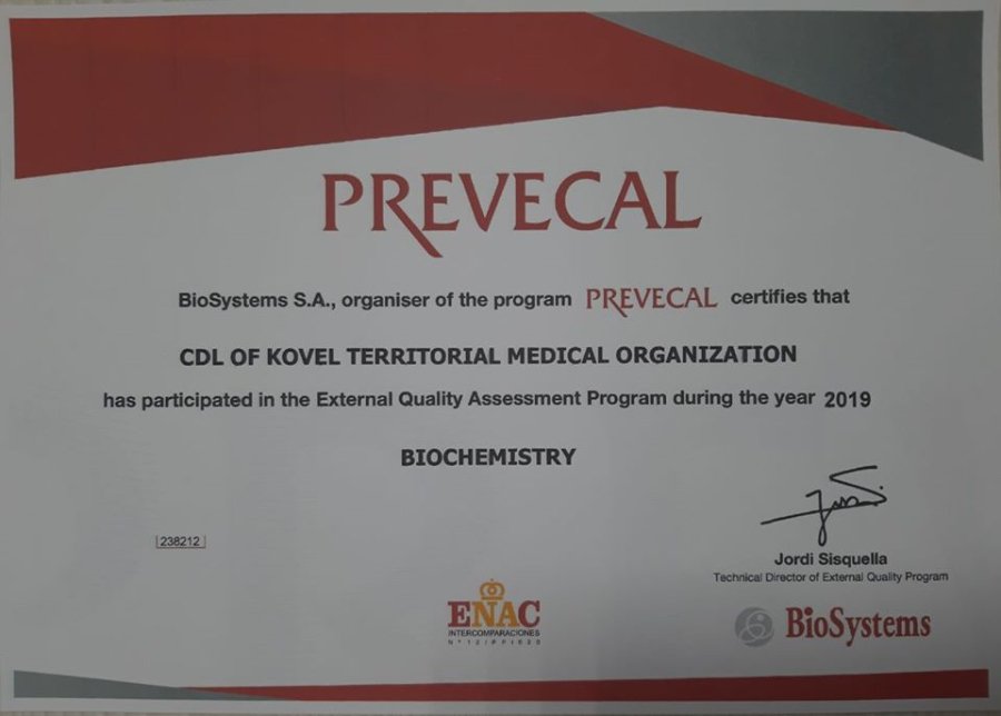 Також додають, що клініко-діагностична лабораторія Ковельського МТМО сертифікована міжнародною компанією BioSystems за програмою PREVECAL, що підтверджує стовідсоткову надійність та гарантує якість досліджень, які проводяться в лабораторії.