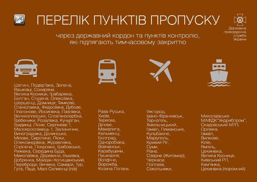 Кабінет міністрів України вирішив тимчасово закрити деякі пункти пропуску через державний кордон та пунктів контролю і припинення в них пішохідного сполучення.