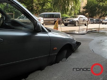 У Києві дорога «ковтнула» іномарку. ФОТО