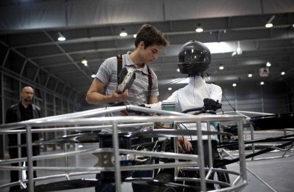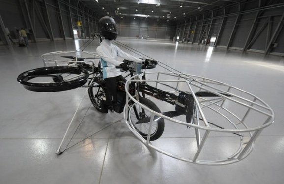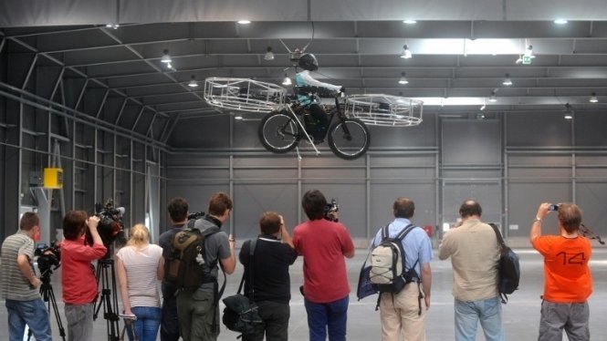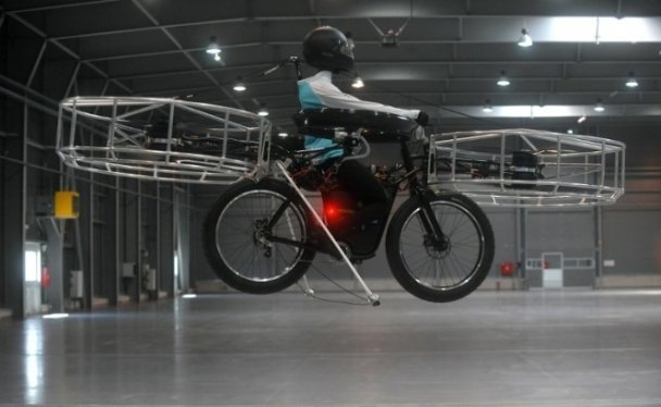 Велосипед злітає над землею завдяки шести потужним горизонтальним пропелерам і мотору. Вага винаходу становить 170 кілограмів.