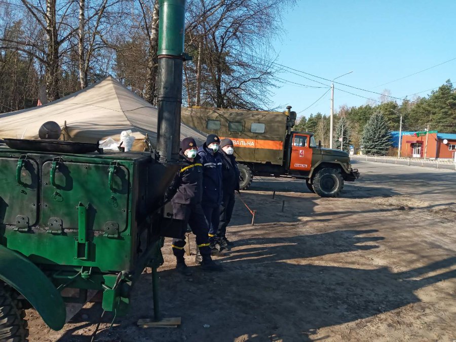 Працівники ДСНС працювали в засобах індивідуального захисту. Робота рятувальників для надання допомоги громадянам на пункті пропуску продовжується.