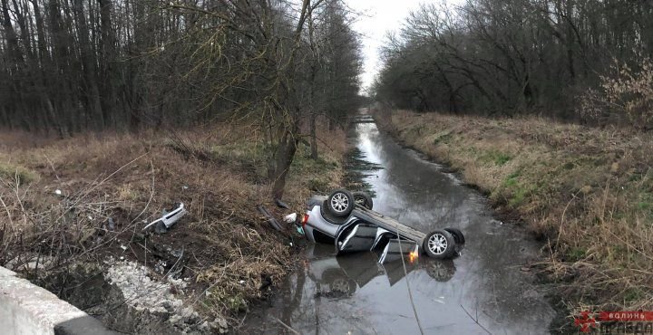 На Волині автівка злетіла з дороги та перевернулася у рів з водою. ФОТО. ВІДЕО