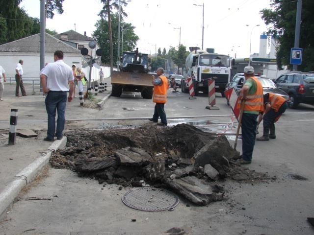 Аварія трапилася на вулиці Святошинській, 27. Провалилося близько 25 метрів дороги, ‒ пише Сегодня http://kiev.segodnya.ua.