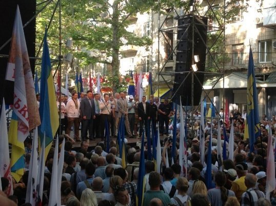 Під час акції присутні голова фракції «Батьківщина» Арсеній Яценюк та фракції ВО «Свобода» Олег Тягнибок, ‒ про це повідомляють у прес-службі «Батьківщини».