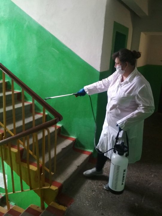 Декілька ОСББ Луцька самоорганізовуються та влаштували дезінфекцію сходових клітин, ліфтів, перил і під’їздів у будинках.