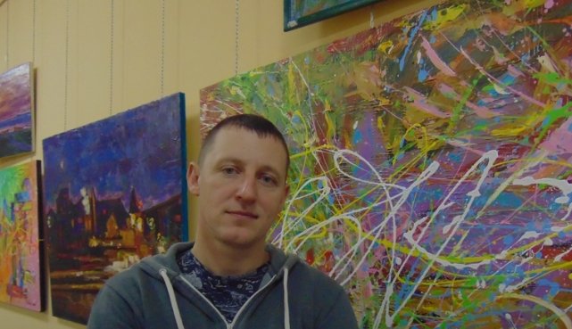 Серед робіт художника, на яких – вибухова гама кольорів, не лише абстрактні полотна, а й волинські пейзажі, улюблені з дитинства зображення тварин.