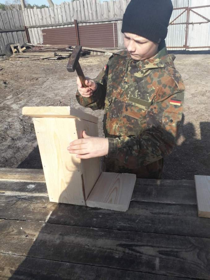 Так, учні 9-го класу Андрій снітко, Ангеліна Шмигельська, Дарина Купріянова, Діана Шмигельська, Людмила Годованюк здійснювали надзвичайно важливу нині справу – розвішували екогодівнички для птахів та шпаківні.