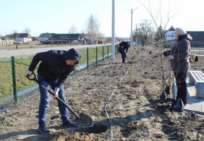 Працівники Вишнівської сільради висадили на території майбутнього моторик-парку 12 молодих саджанців вишні, яка є незмінним символом села ось уже п’ять століть поспіль.