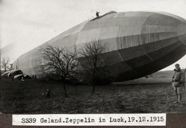 На світлині зазнімкували цепелін (дирижабль) австрійської армії в Луцьку у 1915 році.