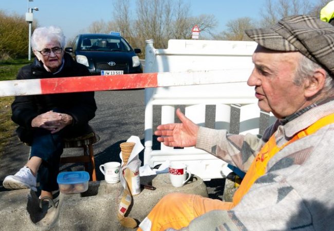 Вже два тижні 89-річний Карстен Тюхсен Гансен з німецької Північної Фризії і його 85-літня подруга Інга Расмуссен з Данії не в змозі відвідувати одне одного через "коронавірусні обмеження". Тому вони зустрічаються на закритому прикордонному переході Авентофт, розмовляючи через шлагбаум.