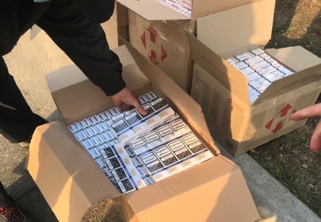Всього 7 ящиків з понад 3 тисячами пачок сигарет різних марок вилучили представники поліції.