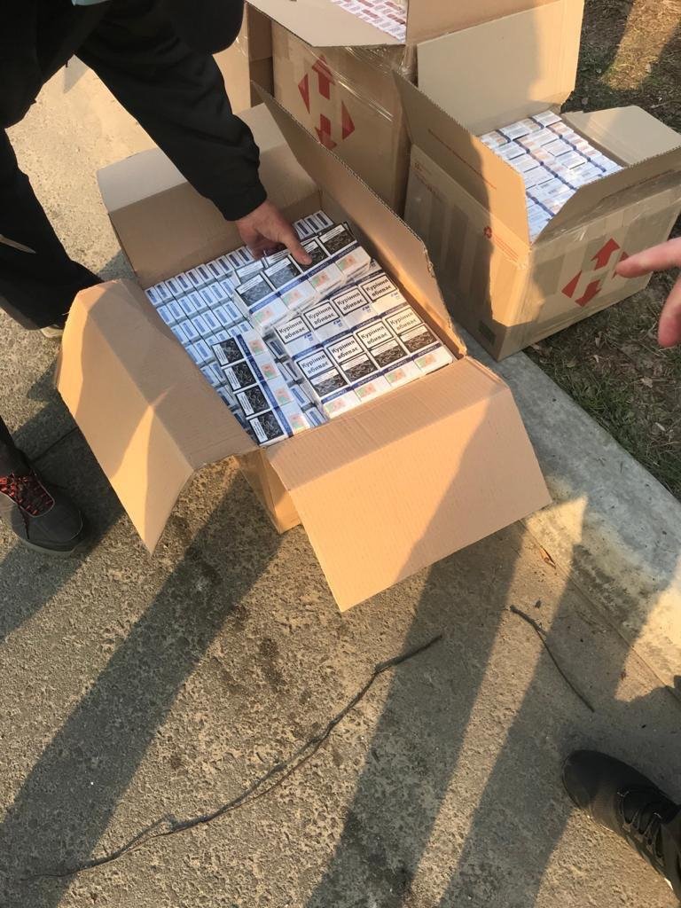 Під час його огляду правоохоронці в салоні автомобіля виявили картонні ящики «Нова Пошта», у яких знаходились тютюнові вироби.