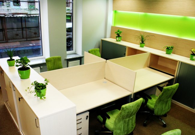 Якщо люди працюють багато годин поспіль, зелений інтер’єр може бути для них дуже корисним. Цей колір мінімізує втомлюваність очей, сприяє нейтралізації негативних емоцій. Працівники можуть довше лишатися спокійними і водночас зібраними та уважними.
