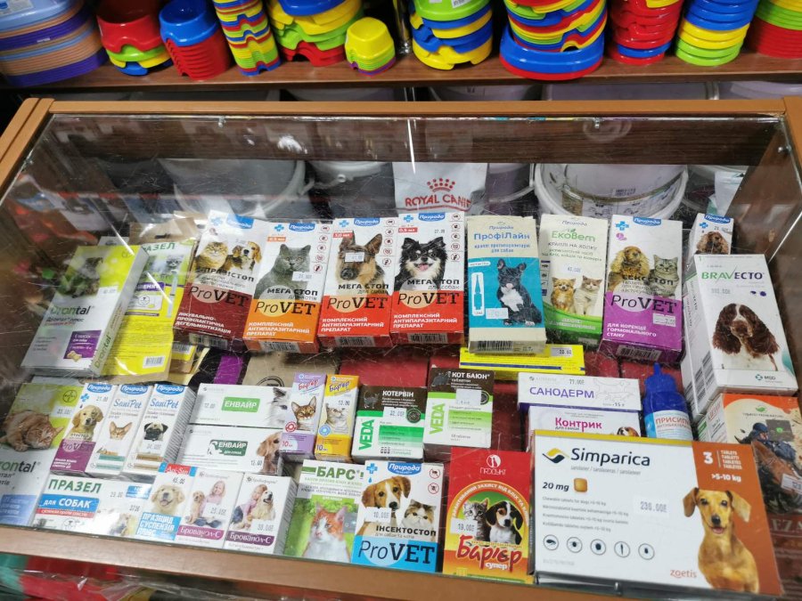 – засоби захисту тварин від бліх та кліщів: краплі, таблетки, нашийники та шампуні: «Bayer», «Trixie», «Бар’єр», «Природа»;