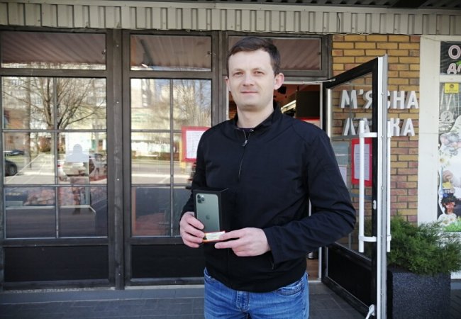 Компанія «Забіяка» вручила приз головному переможцю акції «Купуй сардельки – вигравай IPhone» Віктору Карпуку. У вівторок, 2 квітня, переможець отримав цінний приз – IPhone 11ProMax.