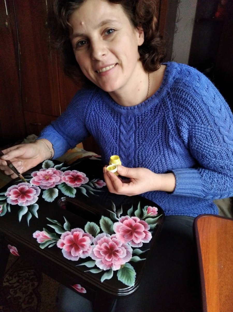 Лариса малює акриловими фарбами. Зізнається, що хотіла б писати картини олійними. Однак, коли у тебе в домі 4 непосиди, це не так легко.
