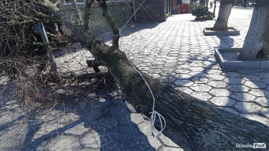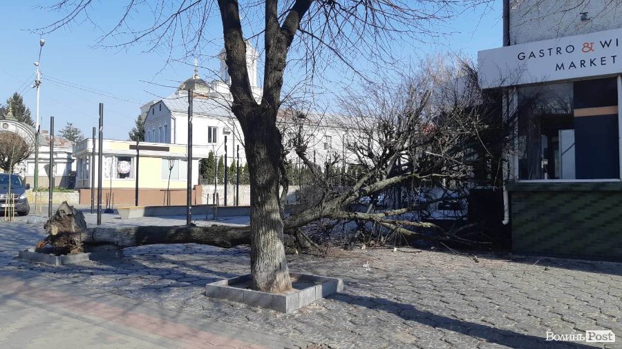 6 квітня у центрі Луцька поблизу магазину «Wine Time» впала аварійна липа. Дерево зачепило і саму будівлю.