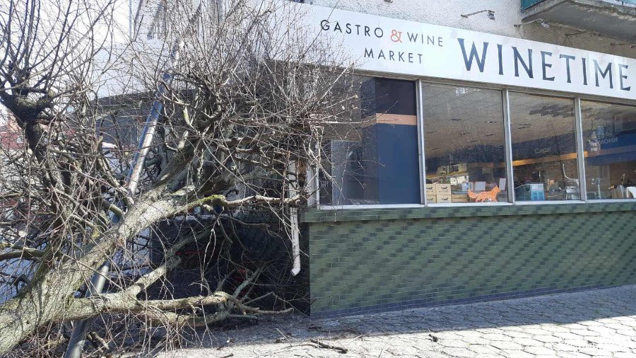 У центрі Луцька на магазин «Wine Time» впала велика липа. ФОТО