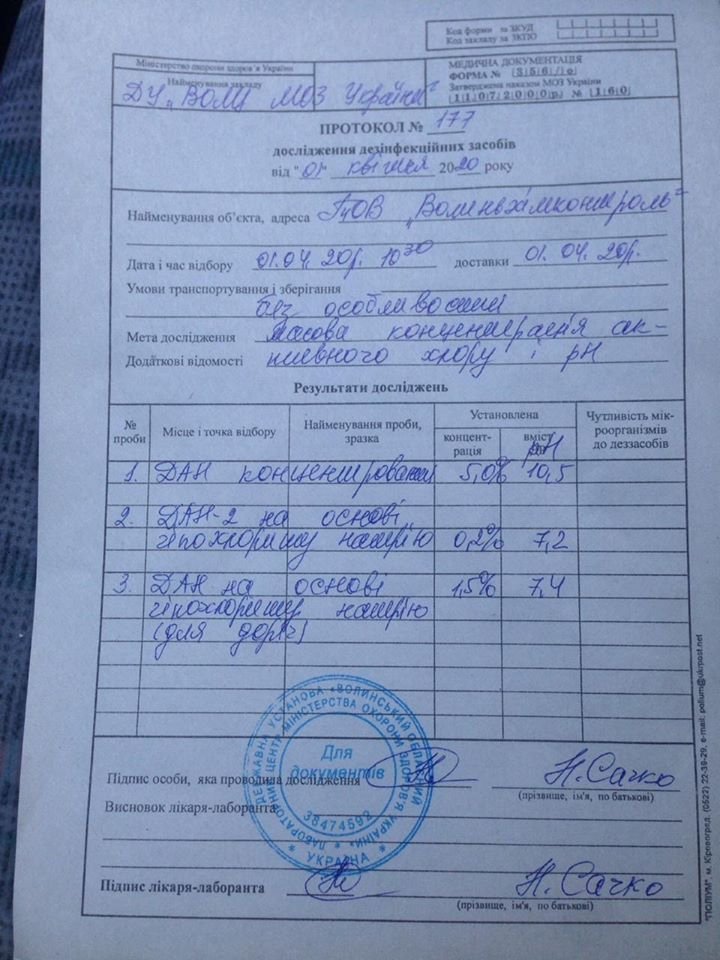 Щодо якості дезінфікаторів у Луцьку – вона підтверджена протоколами досліджень Волинськього ОЛЦ МОЗ України. Підприємство «Волиньхімконтроль» має всі необхідні протоколи досліджень і сертифікати якості. Розчини для дезінфекції підприємство постачає у концентрованому вигляді.