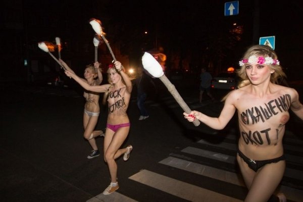 Активістки FEMEN з факелами влаштували облаву на Лукашенка. ФОТО