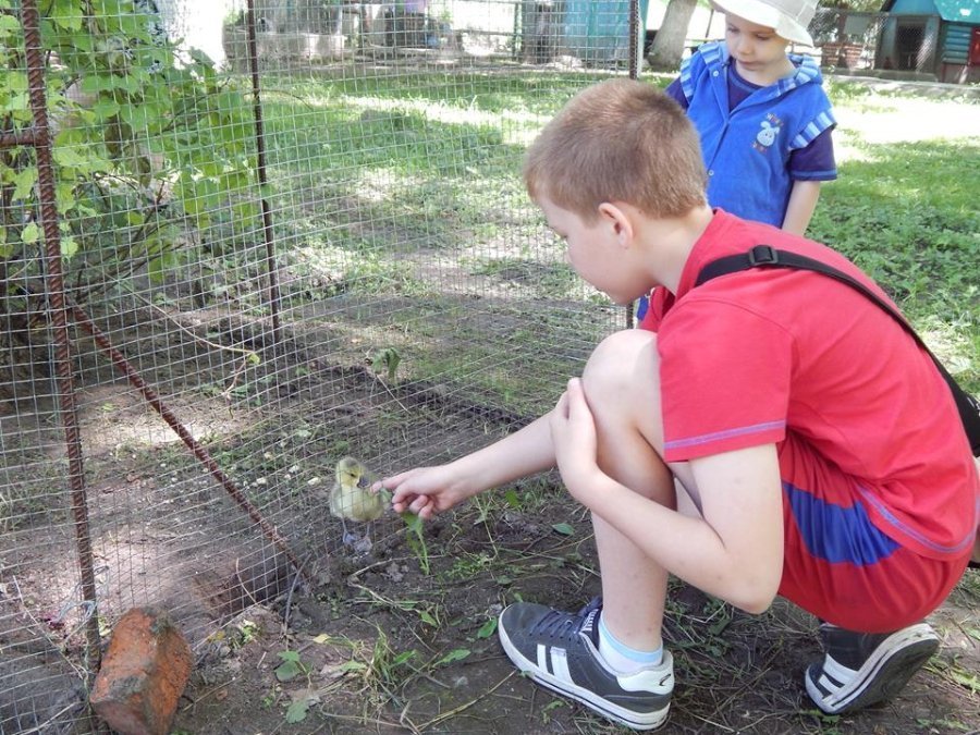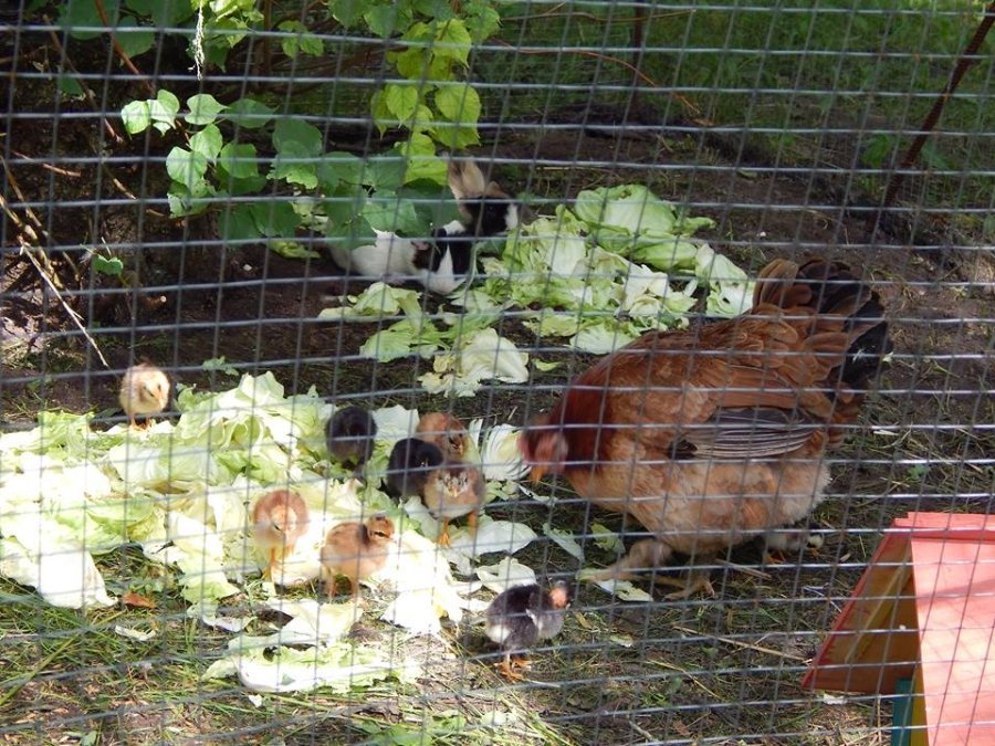 У Луцькому зоопарку в одному вольєрі оселилися морські свинки, кролики, гусеня та квочка з курчатами.
