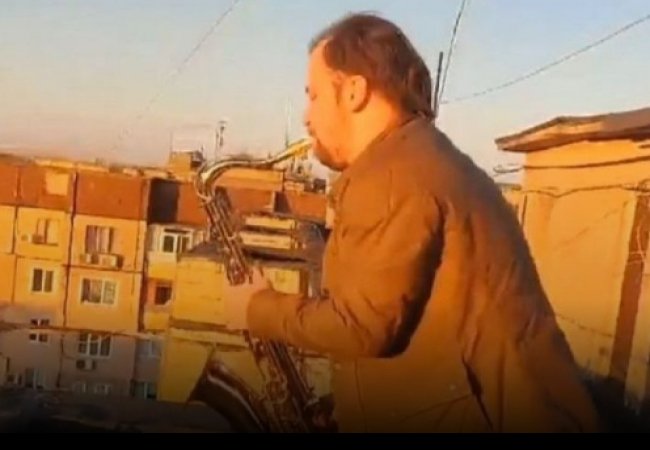 Олексій вийшов на дах багатоповерхівки із саксофоном та гучномовцем і почав грати всесвітньо відомий хіт "Dance Monkey", у якому, до слова, йдеться про те, як добре бути вуличним музикою і розважати натовп, - йдеться в ТСН.Ранок.