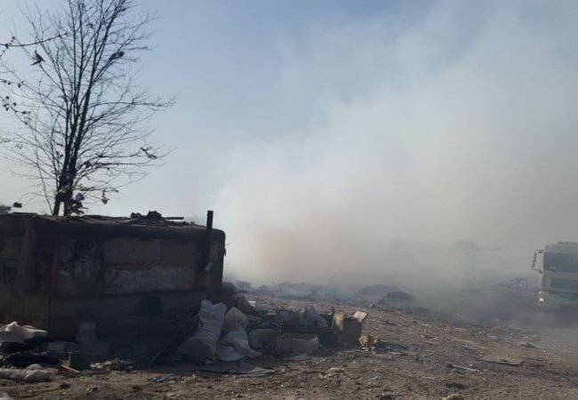 Великі пориви вітру перешкоджають роботі вогнеборців. Накопичене десятками літ сміття горить з середини.