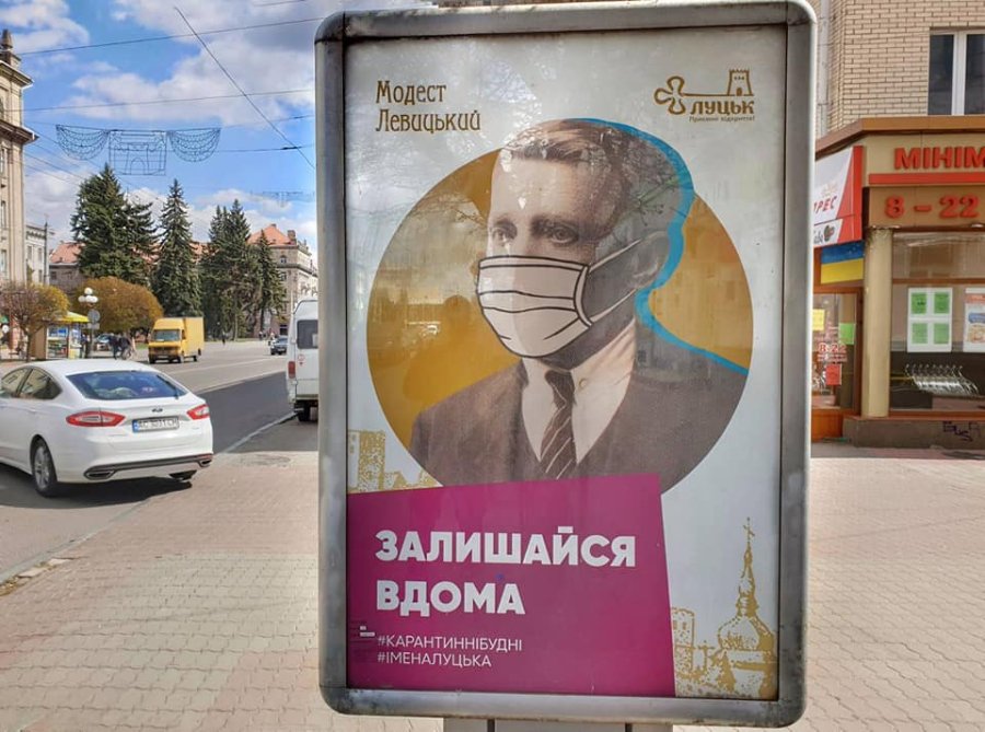 Управління туризму та промоції Луцька підготувало та розмістило у центрі міста сітілайти, із яких відомі на Волині історичні та культурні постаті закликають дотримуватися правил карантину.