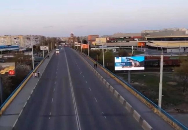 На фото – відеоекран на шляхопроводі проспекту Перемоги, який встановили замість білборда.